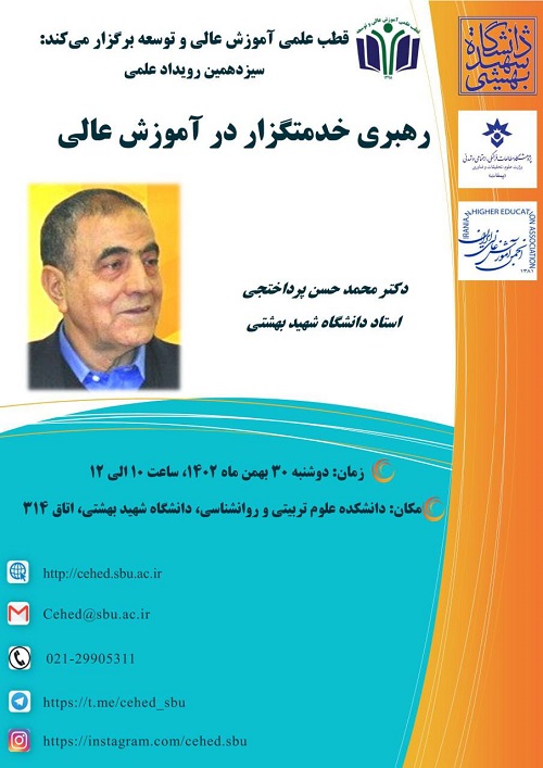 نشست علمی با عنوان «رهبری خدمتگزار در آموزش عالی»، دوشنبه ۳۰ بهمن ماه ۱۴۰۲ در دانشگاه شهید بهشتی برگزار می‌شود.